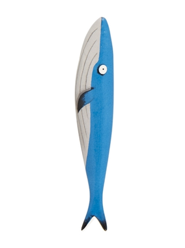 • Figura decorativa em forma de peixe azul e cinzento com olho branco e preto