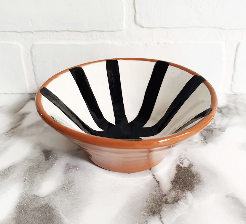 - Terracota resistente de roda e pintada à mão / Esmaltes à base de água / Fabricado em Portugal - Algumas marcas no esmalte são naturais e esperadas / O fundo da loiça vai suar inicialmente, isso é normal e vai diminuir com o tempo - Antes do primeiro uso, as peças devem ser lavadas com água e sabão e secar ao ar.