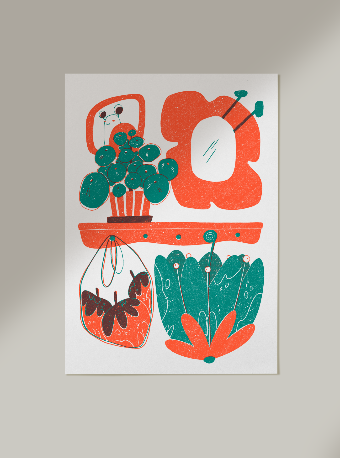 • Ilustração colorida com plantas abstratas e moldura com espelho
