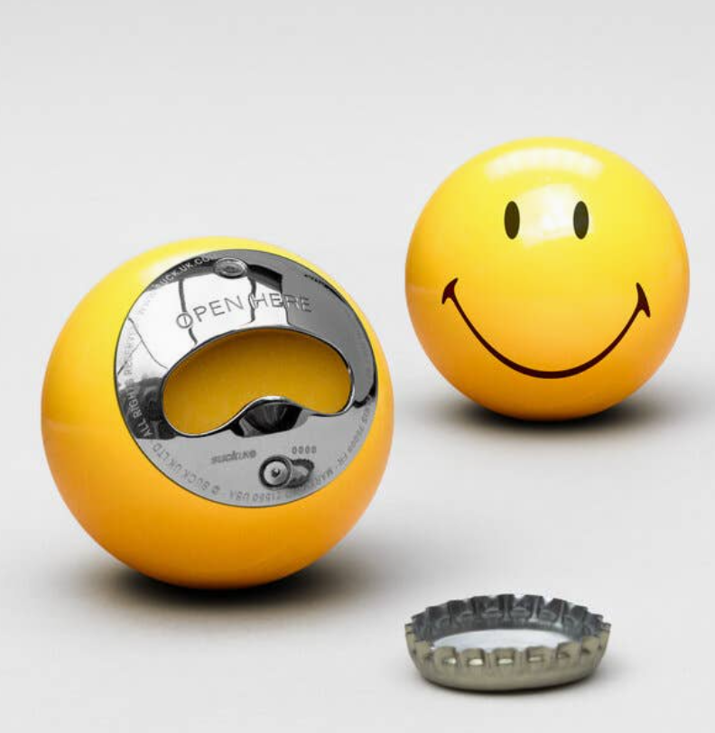 Mais uma colaboração entre a Smiley e a SuckUK. Pegamos numa bola de bilhar amarela personalizada, maquinamos no formato desejado e adicionamos um abridor em aço inoxidável polido. Se nada o faz sorrir mais do que uma cerveja acabada de abrir, este é o item de bar perfeito para si.