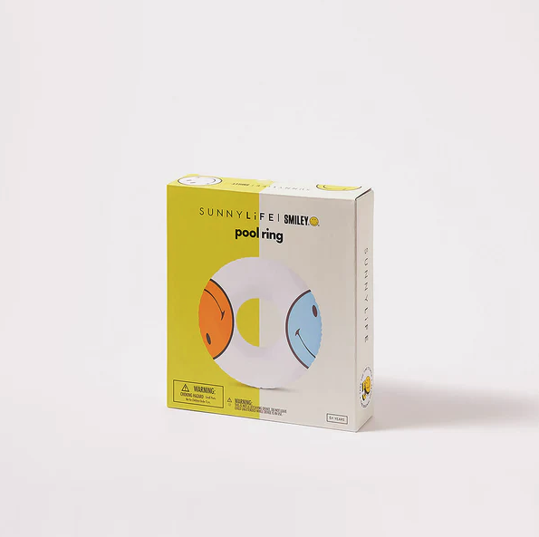 SMILE, IT'S SUMMER Need a pick me up this summer? The SMILEY® Pool Ring is the ultimate mood booster! From the official SUNNYLiFE x SMILEY® collaboration, The SMILEY® Pool Ring features the iconic SMILEY® logo and a double sided design. With a chic colour scheme of white, blue, orange and citrusy neon, this is a pool ring perfect for the whole family! Ensure your summer is filled with good vibes only and take happiness to the next level with the SMILEY® Pool Ring.