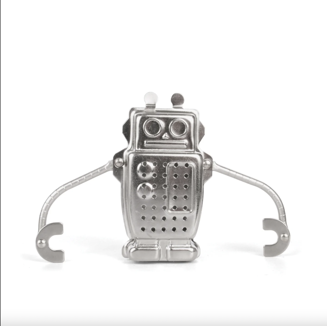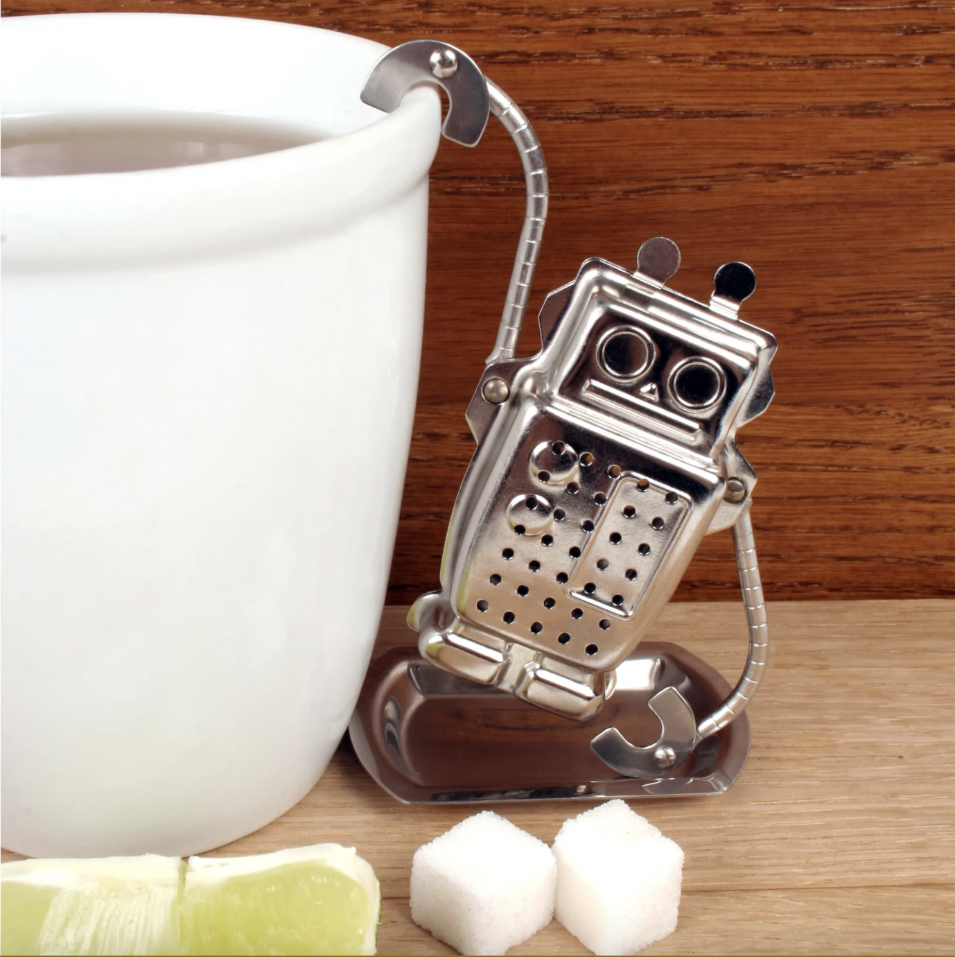 Este divertido infusor de chá em aço inoxidável em forma de robô tem braços ajustáveis. Assim, você pode facilmente colocá-lo em uma caneca de qualquer tamanho. Além disso, a bandeja incluída serve como pires quando seu trabalho é feito.