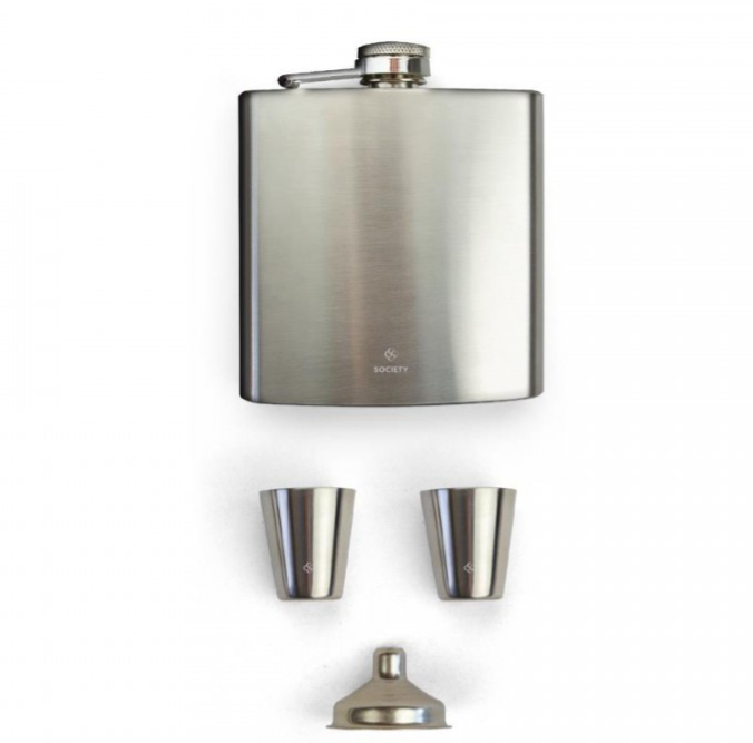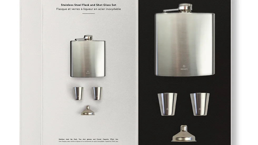 STAINLESS STEEL FLASK AND SHOTGLASS SET SOCIETY PARIS