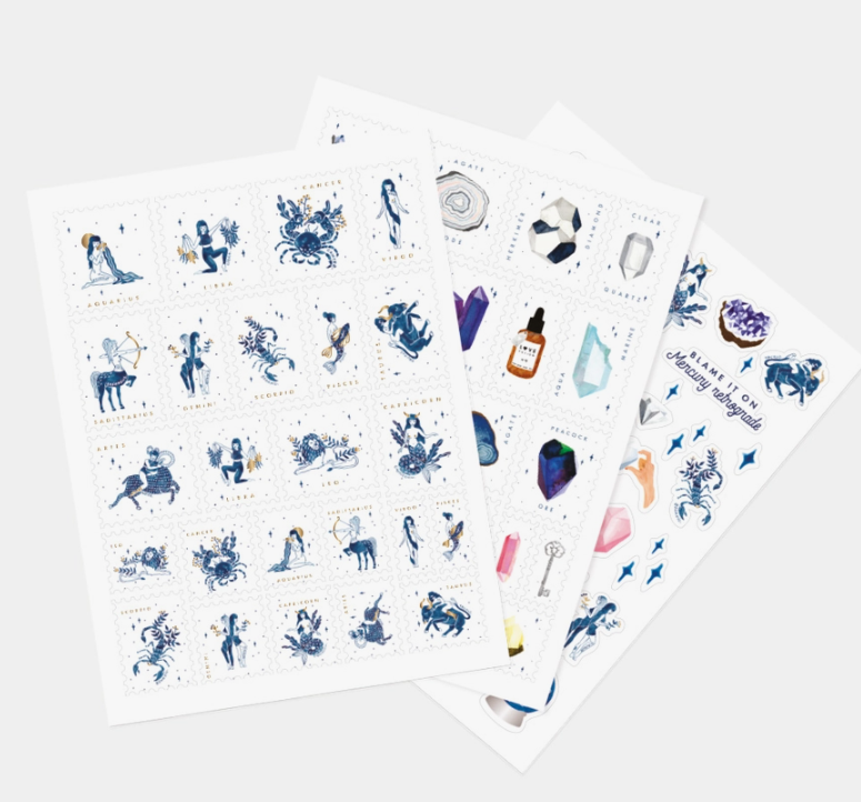 • Folhas de autocolantes com signos do zodíaco e cristais coloridos