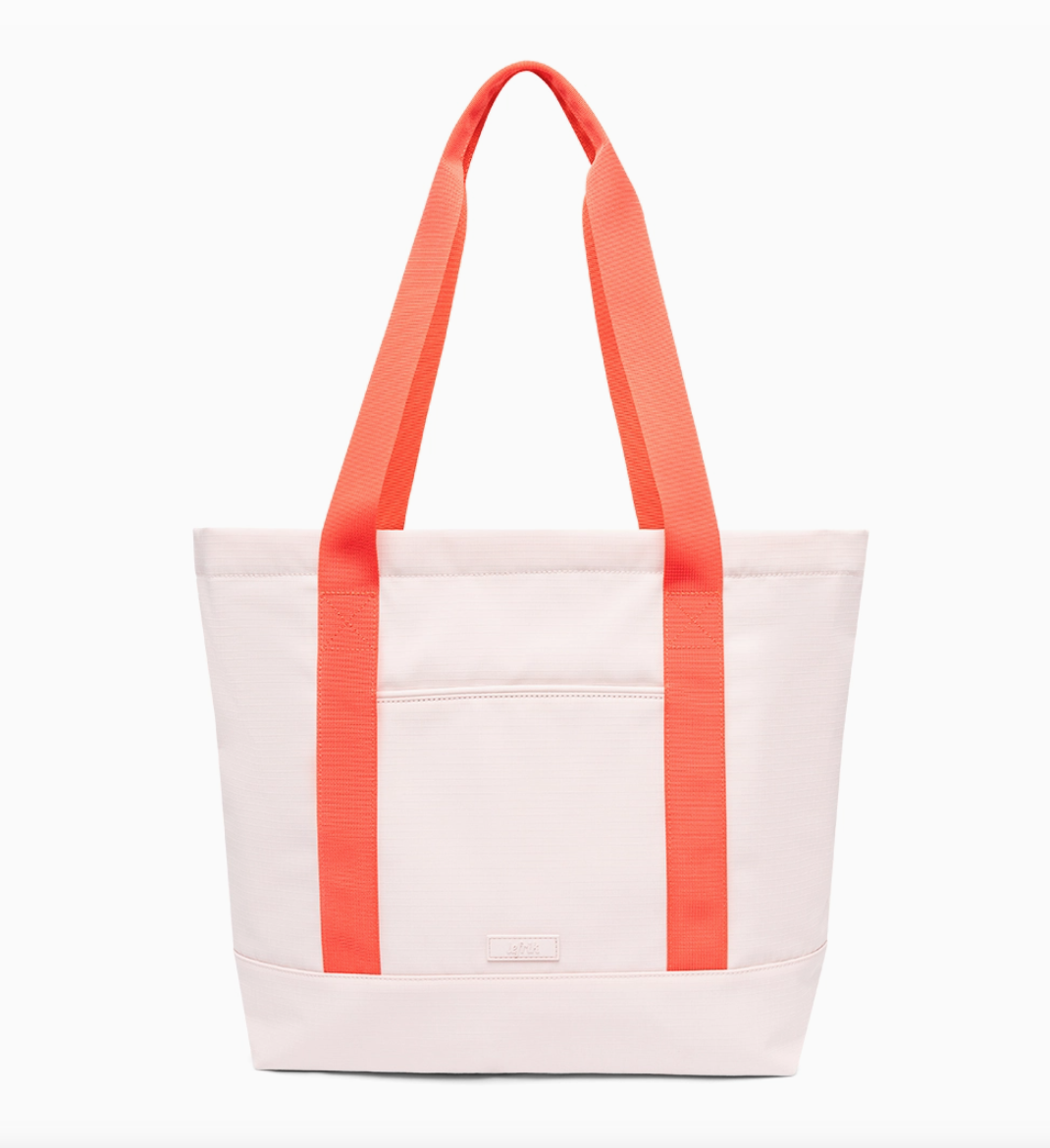 • Saco de tecido branco com alças cor de coral