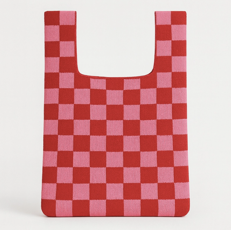 MALA DE MALHA "BOLD CHECKER" VERMELHA TOKEII KNIT STUDIO