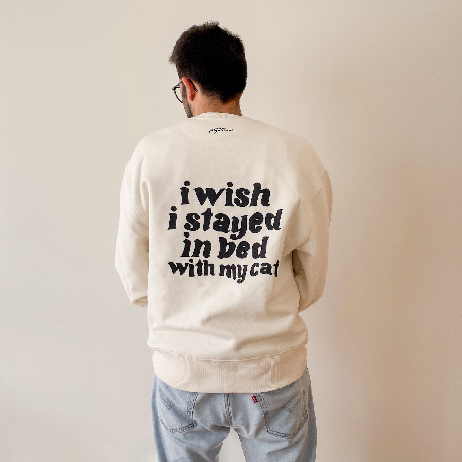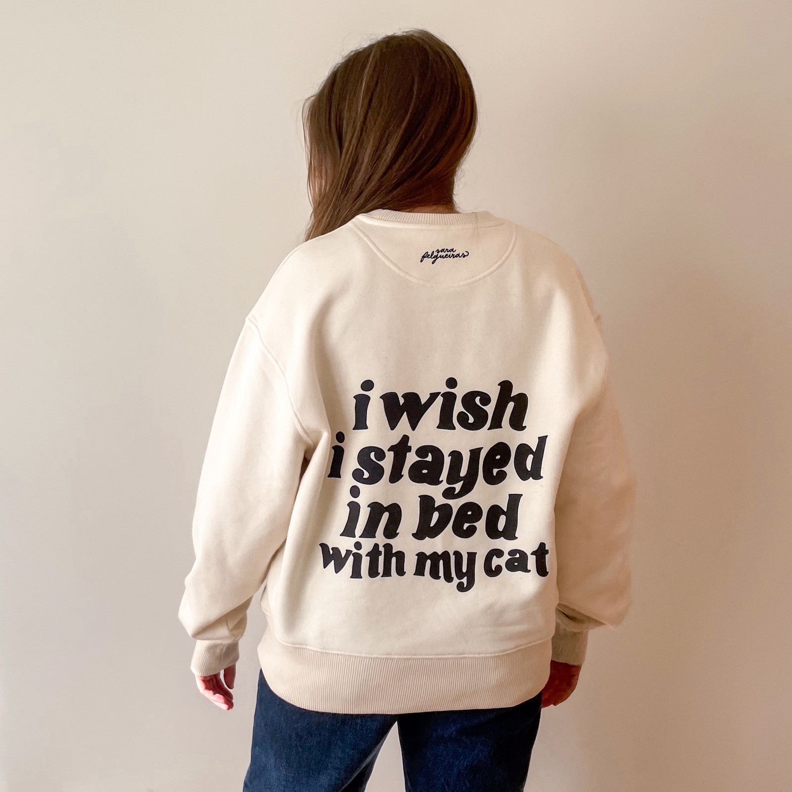 SWEATSHIRT BEGE "I WISH I STAYED IN BED WITH MY CAT" SARA FELGUEIRAS