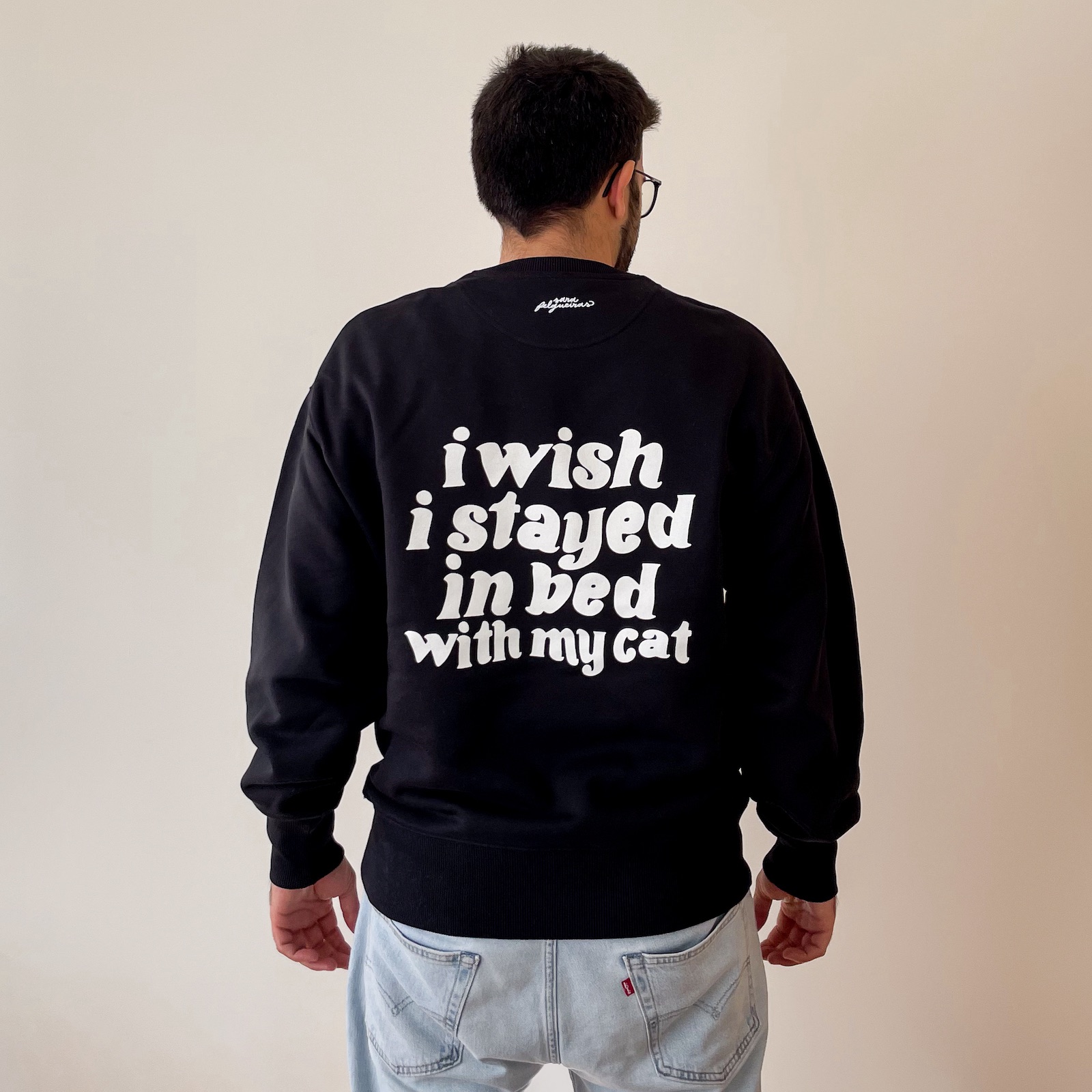 SWEATSHIRT PRETA "I WISH I STAYED IN BED WITH MY CAT" SARA FELGUEIRAS