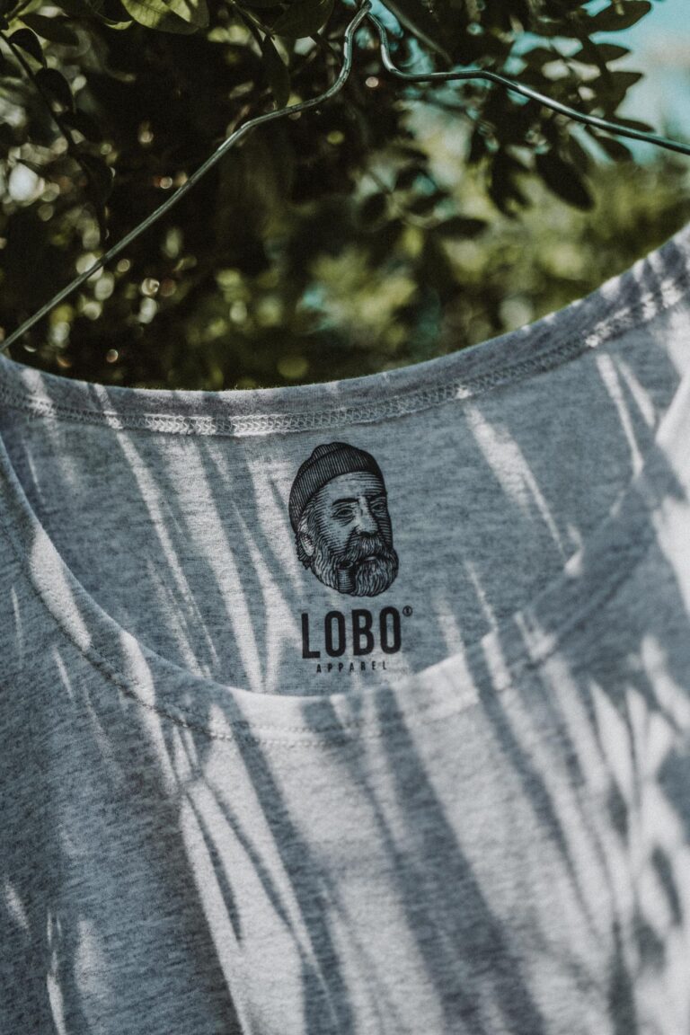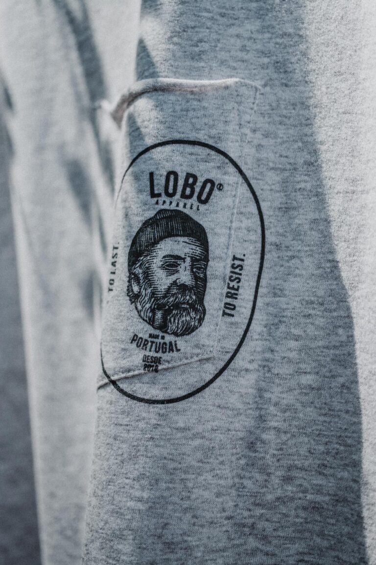 • Peça de roupa cinza claro com etiqueta LOBO