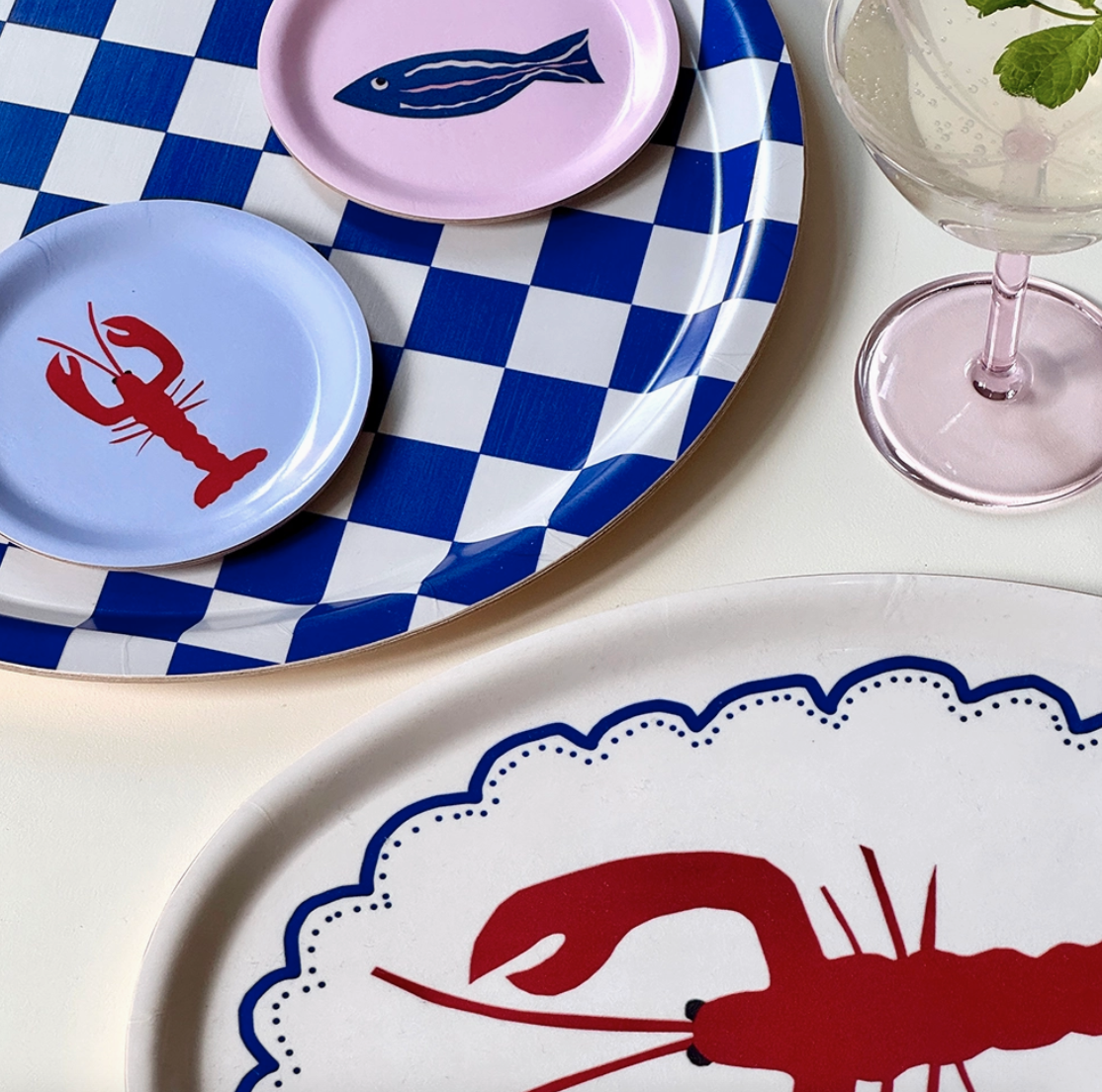 Apresentamos a nossa Travessa Oval de Lagosta, a adição perfeita para as suas festas de verão. Esta travessa de cor creme apresenta uma encantadora lagosta rodeada por uma borda de renda azul, acrescentando um toque de nostalgia à sua louça de servir. Esta travessa traz um toque de elegância ao receber convidados e tem o tamanho perfeito para acomodar duas bebidas e um petisco.