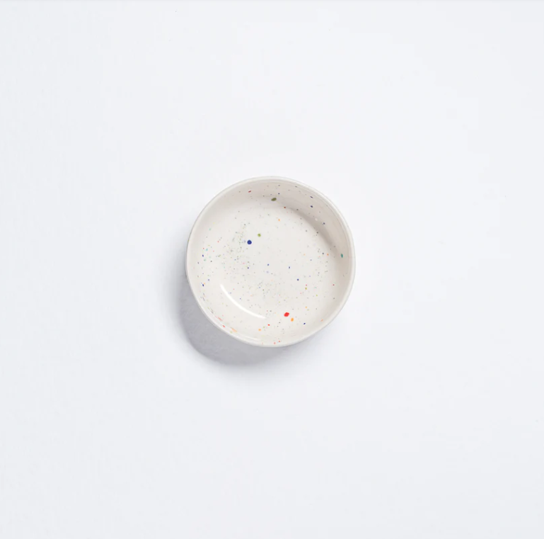 • Prato pequeno em cerâmica branca com pintas coloridas