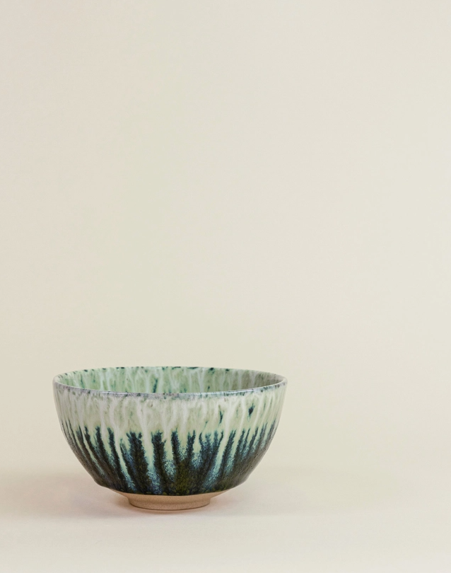 • Tigela de cerâmica verde e preta com padrão escorrido