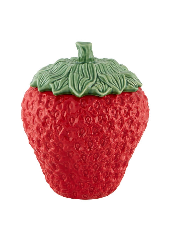 • Recipiente em cerâmica formato morango vermelho com tampa verde de folhas