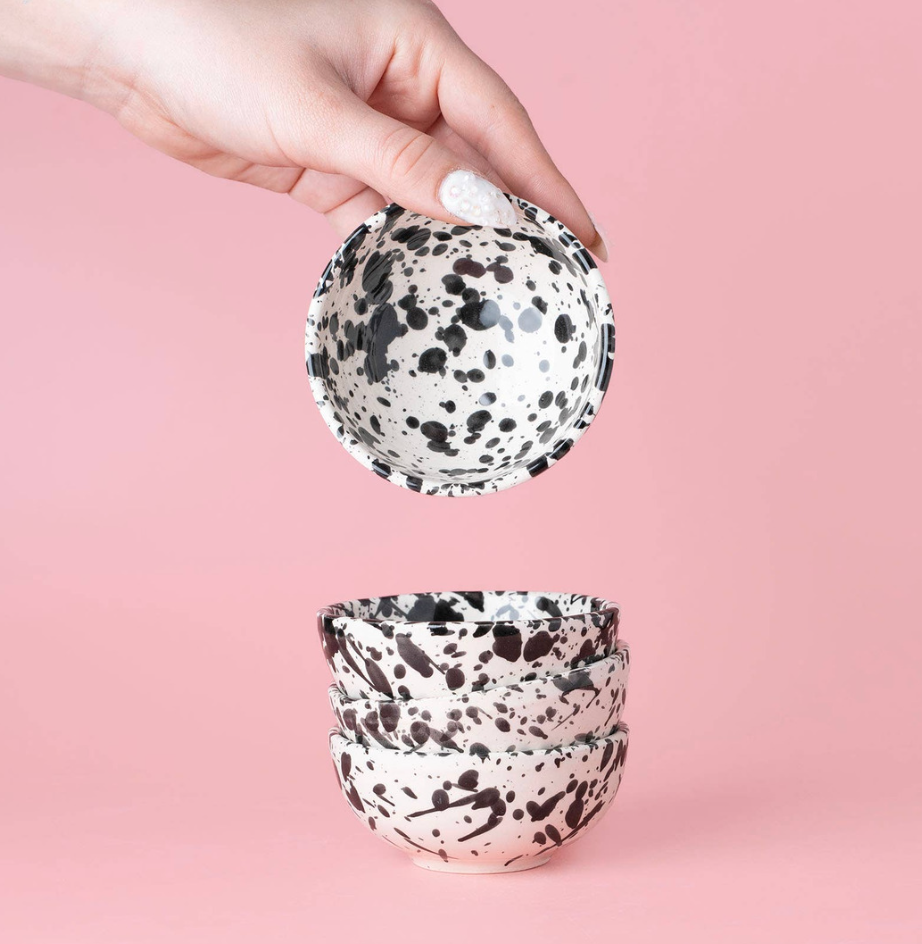 Estas tigelas artesanais são perfeitas para molho de soja, wasabi ou outros acessórios de sushi. Com seu padrão exclusivo de respingos em preto e branco, elas são um complemento estiloso e divertido para sua mesa – tão bonitas quanto práticas. Vendidas individualmente.