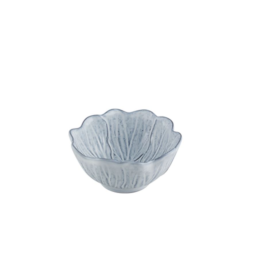 • Tigela decorativa azul claro em cerâmica com padrão de folhas