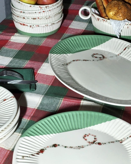 Travessa em cerâmica pintada à mão com decoração Xmas. O ar enche-se com a magia da época natalícia durante o Natal, numa altura de encantamento e maravilha. A exibição hipnotizante de luzes de Natal iluminadas nas ruas e casas é um dos aspetos mais alegres e encantadores, criando um ambiente acolhedor e convidativo. A magia toca uma peça artesanal da nossa coleção Tália Christmas 23 incorporação abstrata de luzes, gurindas e cores que podem verdadeiramente trazer a magia do Natal à vida e à sua casa. Todas as peças “Pó de Barro” são únicas. Devido à produção artesanal todos os produtos apresentam variações de formas, cores e acabamentos.