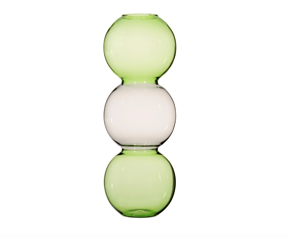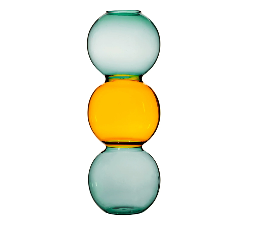 • Vaso de vidro formado por três esferas, duas rosa translúcido e uma azul no meio.