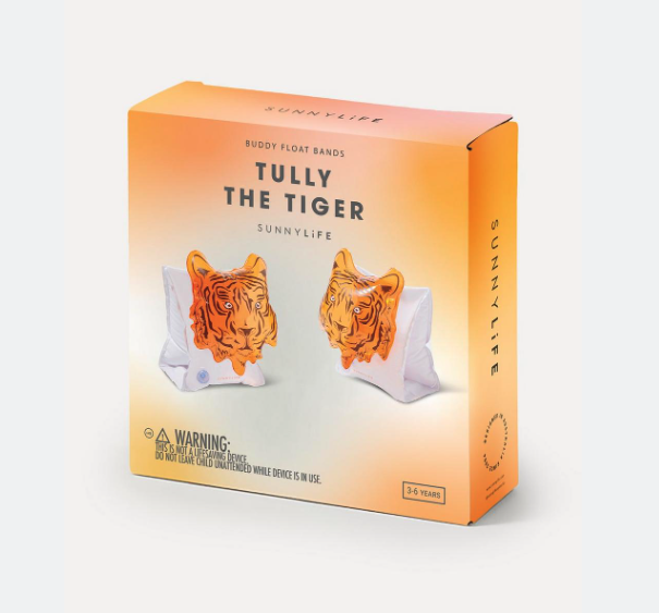 TULLY THE TIGER Go wild for Tully The Tiger! Your little one's imagination will run free as they play with her - she's fierce, energetic, and queen of the jungle. Never knew that tigers love to swim? Hit the beach or pool this summer with Tully and get excited about water playtime. A trendy tiger stripe print, playful 3-D features and pops of bright neon make the Tully collection a bestseller, loved by parents as well as kids. With a range of accessories and toys, from floats to goggles and swim vests, Tully is here to keep your little one safe and having fun in the water all summer long!