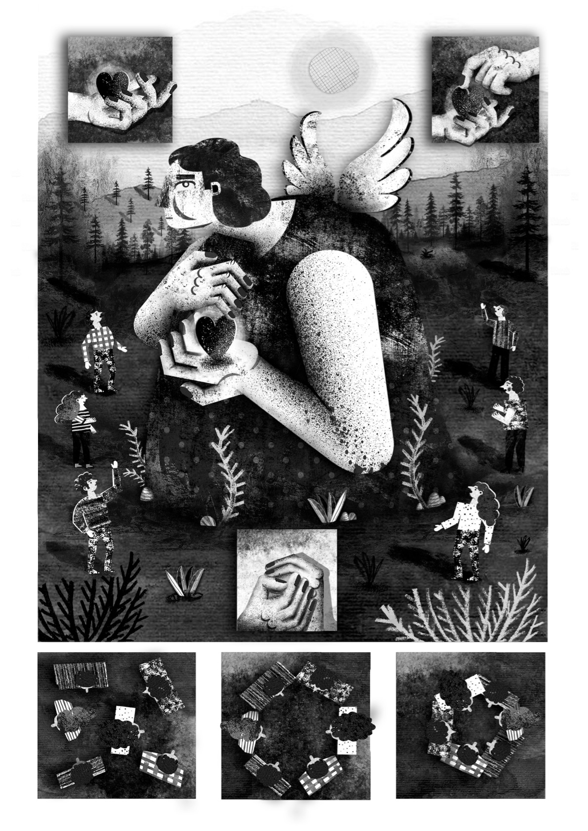 Sendo uma sonhadora e criativa, sente uma necessidade enorme de transparecer nas suas ilustrações todo o rebuliço de ideias que habitam dentro da sua cabeça. Ansiosa para alcançar a perfeição em cada ilustração que faz, explora a técnica mixedmedia. Ao fazê-lo, gera uma relação intimista que tira partido da técnica digital e da técnica analógica para criar texturas que enriquecem visualmente o seu trabalho.