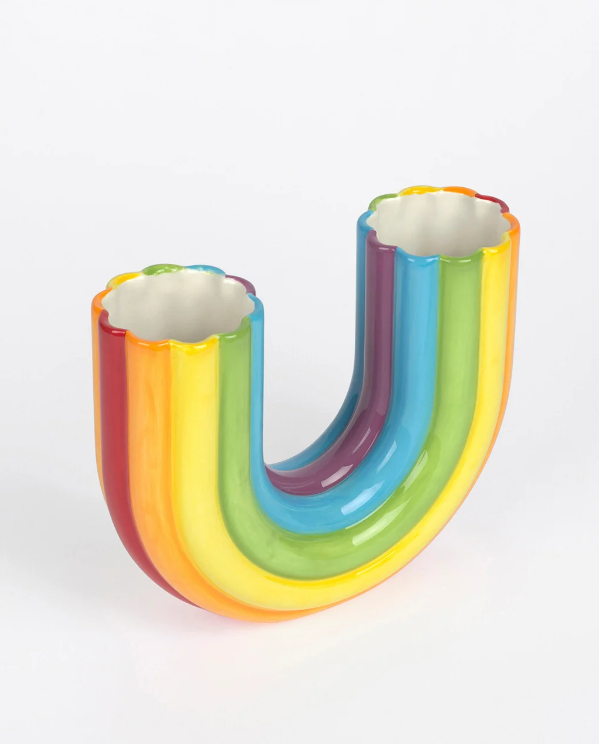 • Vaso cerâmico colorido em forma de arco-íris com acabamento brilhante