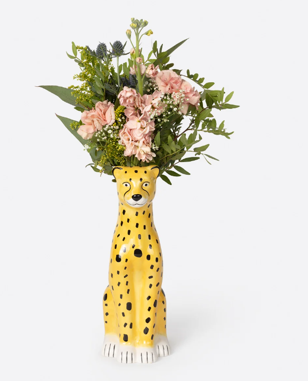 • Vaso cerâmica em forma de chita com flores artificiais