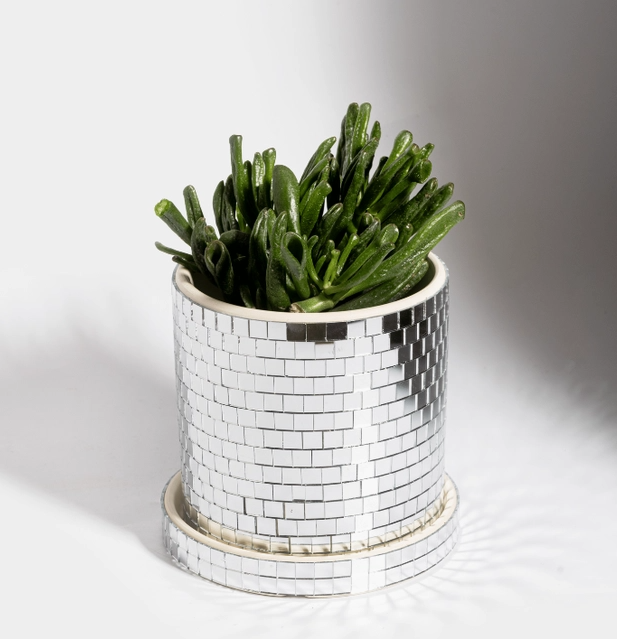 Coloque as suas plantas neste vaso com tema discoteca, que dará um toque especial à sua decoração.