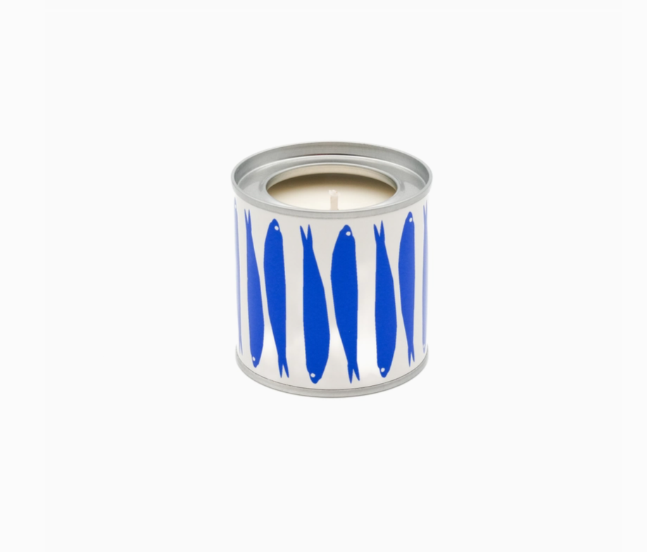 Made of soy wax, essential and fragrance oils, packaged in cans.
