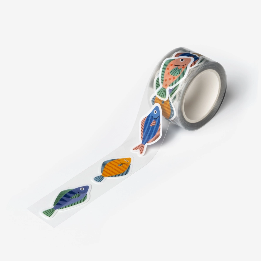 • Rolo de fita adesiva com padrão de peixes coloridos