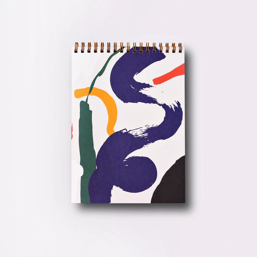 • Bloco de notas com capa colorida abstrata e espiral dourada