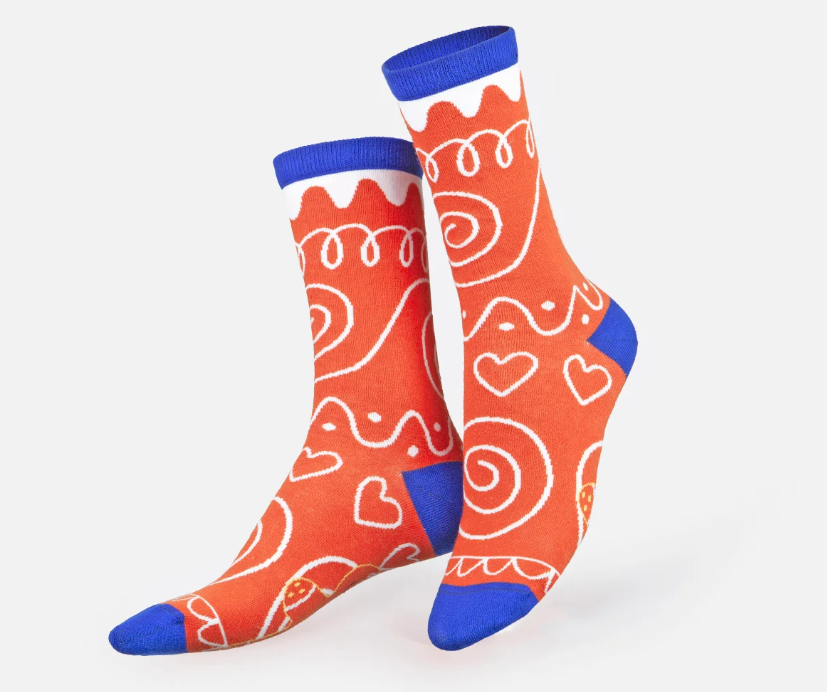 Get cozy this holiday season with these adorable gingerbread cookie-shaped socks. Decorated with festive icing, these socks are the perfect treat for your feet.